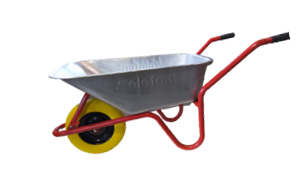Количка с товароподемност 180 кг, 147 x 59 x 62 см Работна количка ELEFANT T1-P е с капацитет 100 л, товароподемност 180 кг, размер на коритото 147 x 59 x 62 см, пневматично колело 3.50-8 монтирано на 20 мм ос. Количка ELEFANT T1-P е от една рамка, с опора на коритото с един винт отпред, коритото е свързано с рамата с четири винта (общо пет винта). Коритото е отлято от висококачествена поцинкована стомана, устойчива към окисляване.